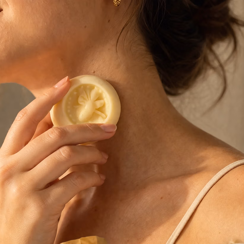 This lotion bar is rich, smooth, and easy to use. Just rub the bar directly onto dry areas such as your hands, fingertips, elbows, feet, heels, or knees. As it warms against your skin, it glides on easily and leaves your skin feeling soft, comforted, and hydrated.